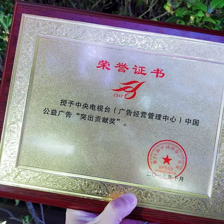 央視廣告經營管理中心將唯一的“中國公益廣告突出貢獻獎”收入囊中。2016年以來央視廣告高舉旗幟,引領導向,在公益廣告領域深耕細作、孜孜進取,創作出一批創意優良、主題鮮明的廣告精品。例如,“慶祝建黨95周年”公益廣告《我是誰》、激發愛國情懷的《今天,我們這樣愛國》等,引領價值,引爆網絡,成為成風化人的現象級作品。