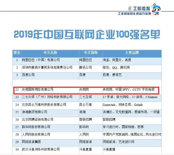 8月14日,中國(guó)互聯(lián)網(wǎng)協(xié)會(huì)、工業(yè)和信息化部網(wǎng)絡(luò)安全產(chǎn)業(yè)發(fā)展中心(工業(yè)和信息化部信息中心)在2019年中國(guó)互聯(lián)網(wǎng)企業(yè)100強(qiáng)發(fā)布會(huì)暨百?gòu)?qiáng)企業(yè)高峰論壇上聯(lián)合發(fā)布了2019年中國(guó)互聯(lián)網(wǎng)企業(yè)100強(qiáng)榜單、互聯(lián)網(wǎng)成長(zhǎng)型企業(yè)20強(qiáng)榜單和《2019年中國(guó)互聯(lián)網(wǎng)企業(yè)100強(qiáng)發(fā)展報(bào)告》。 中國(guó)互聯(lián)網(wǎng)協(xié)會(huì)、工業(yè)和信息化部網(wǎng)絡(luò)安全產(chǎn)業(yè)發(fā)展中心(工業(yè)和信息化部信息中心)聯(lián)合發(fā)布的“2019年中國(guó)互聯(lián)網(wǎng)企業(yè)100強(qiáng)”榜單,作為中國(guó)互聯(lián)網(wǎng)行業(yè)“含金量”最高的年度榜單之一,對(duì)入圍企業(yè)的評(píng)選標(biāo)準(zhǔn)堪稱“優(yōu)中選優(yōu)”。 除了大眾熟知的頭部企業(yè)外,今年主流媒體軍團(tuán)實(shí)力尤為強(qiáng)勁。其中,中央廣播電視總臺(tái)旗下新媒體機(jī)構(gòu)央視網(wǎng),排名更是由2017年的53位、2018年的33位,一躍挺進(jìn)至22位,在中央媒體所屬互聯(lián)網(wǎng)企業(yè)排名第一,展現(xiàn)出“起跑就是加速度,發(fā)聲必為最強(qiáng)音”的總臺(tái)實(shí)力。