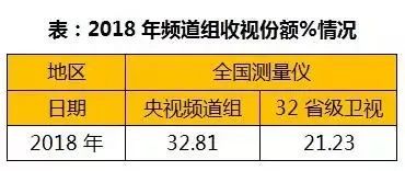 2018年,央視頻道組份額32.81%,衛(wèi)視組21.23%。