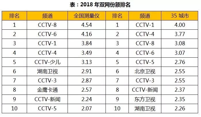 二、2018央視包攬雙網(wǎng)前五,CCTV-8、CCTV-1分獲雙網(wǎng)冠軍