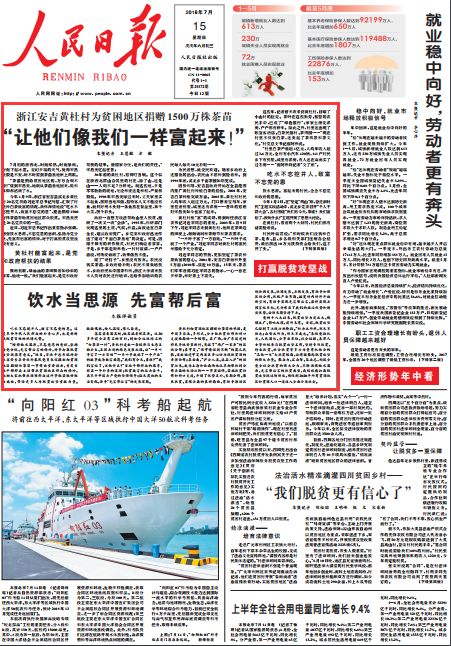 安吉黃杜村為貧困地區捐贈1500萬株茶苗一事,得到習近平總書記的重要批示,總書記強調,增強飲水思源、不忘黨恩的意識,弘揚為黨分憂、先富幫后富的精神,對于打贏脫貧攻堅戰很有意義。